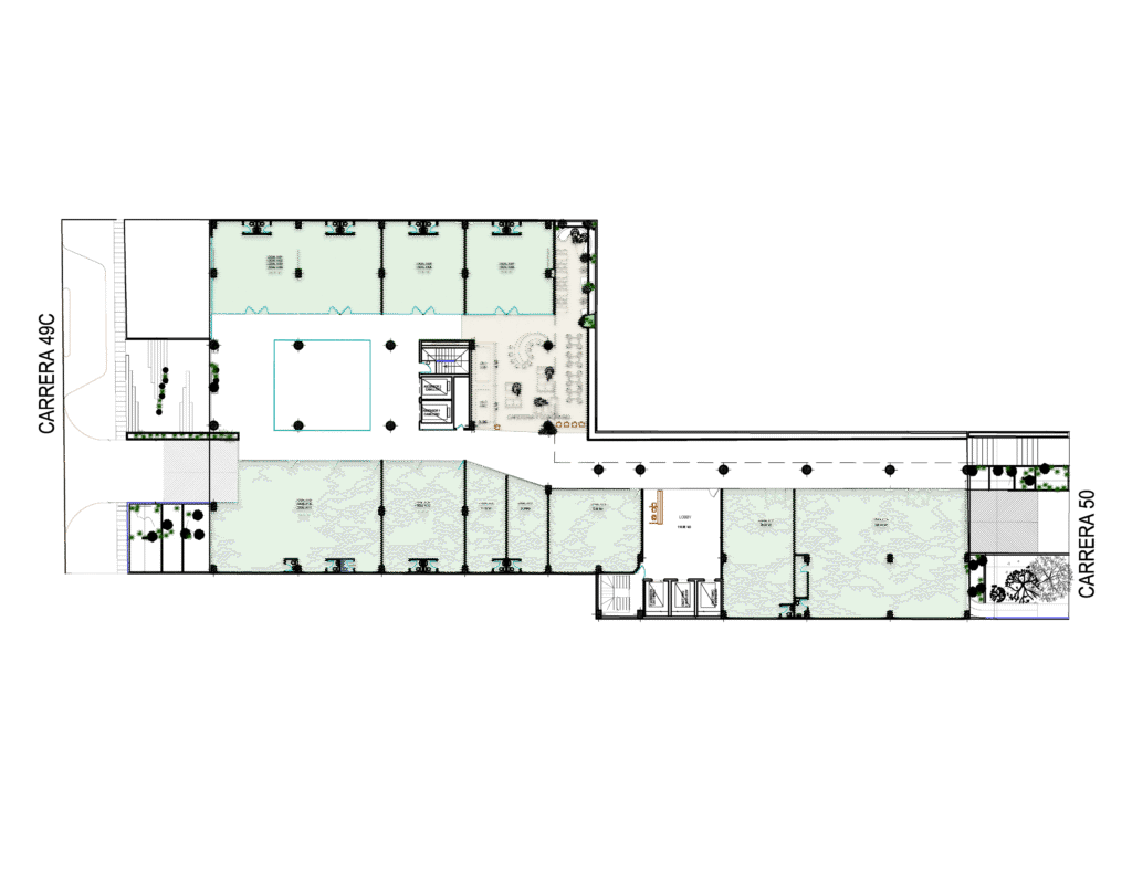 Los parqueaderos tienen entrada y salida vehicular por la Carrera 49C y la Carrera 50, lo que permite una circulación ágil, segura y sin congestiones.